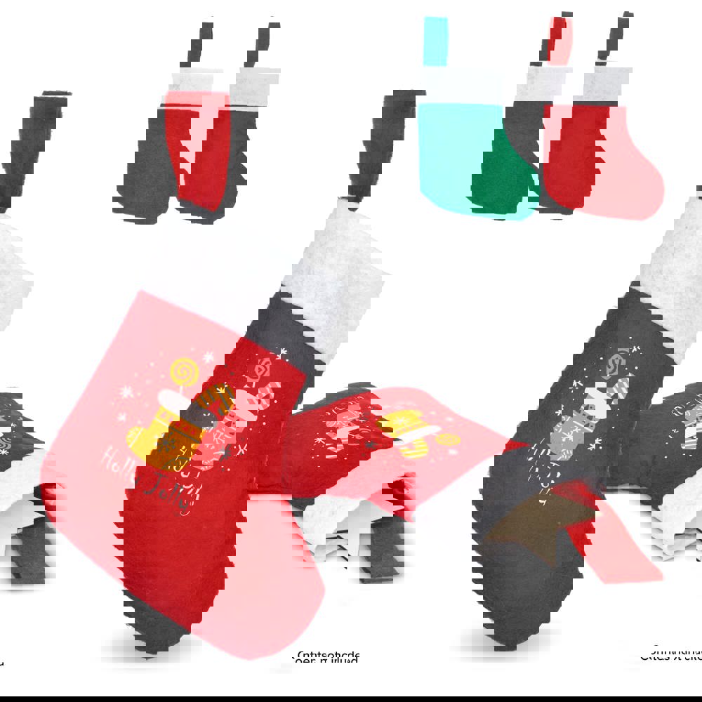 Deze kleine vilten kerstsok is een charmante aanvulling op elk kerstdecor, en perfect om kleine verrassingen in te bewaren. Het zachte materiaal en het feestelijke ontwerp maken het een leuke en sfeervolle toevoeging aan je kerstversiering.