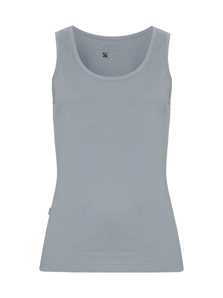 Classic tanktop met brede schouderbanden in een netjes licht getailleerd model. Bies langs de halslijn en armsgaten. Gedrukt label op de achterkant van de nek.
