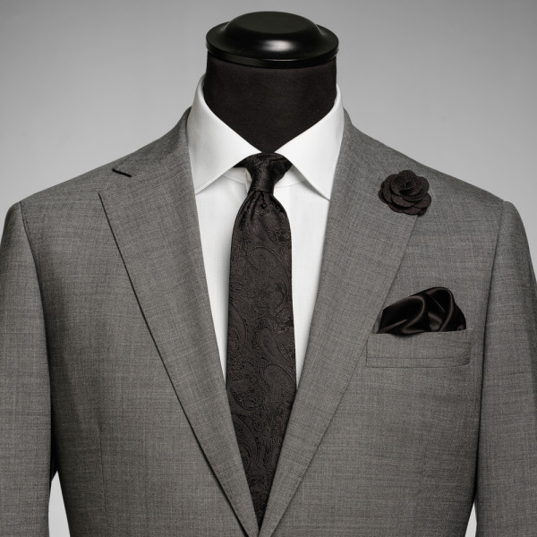 Effen zijden stropdas met een paisley-patroon in dezelfde kleurtinten. De breedte van de stropdas...meer