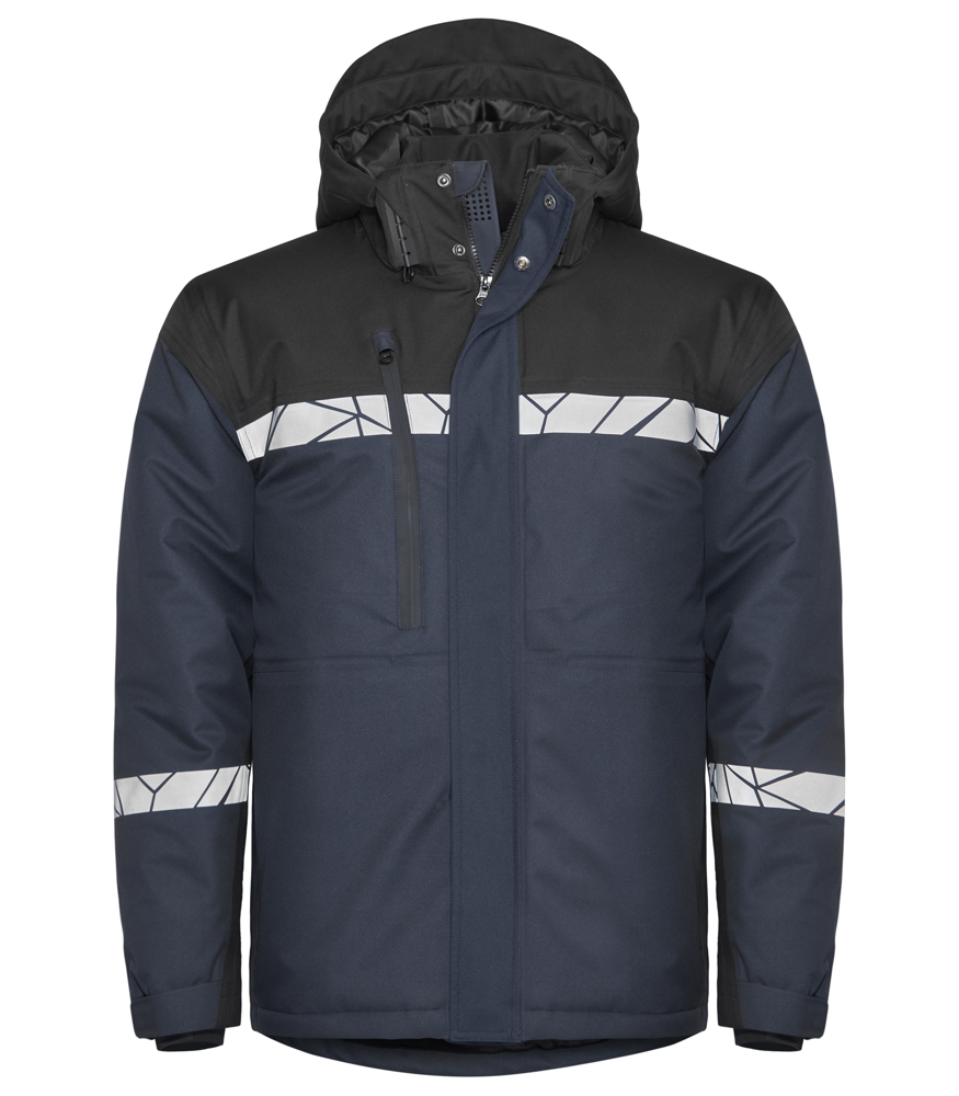 • Gewatteerde softshell-jas van wind- en waterafstotend materiaal, rits aan de voorkant is bedekt met een flap om tocht en waterlekkage te voorkomen