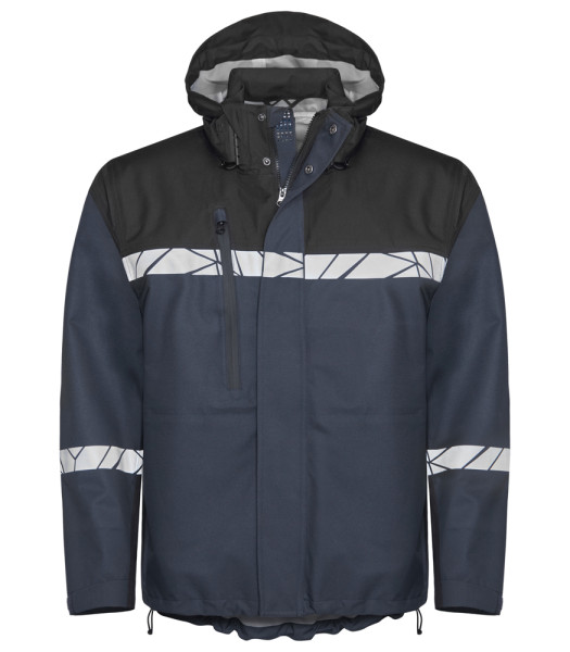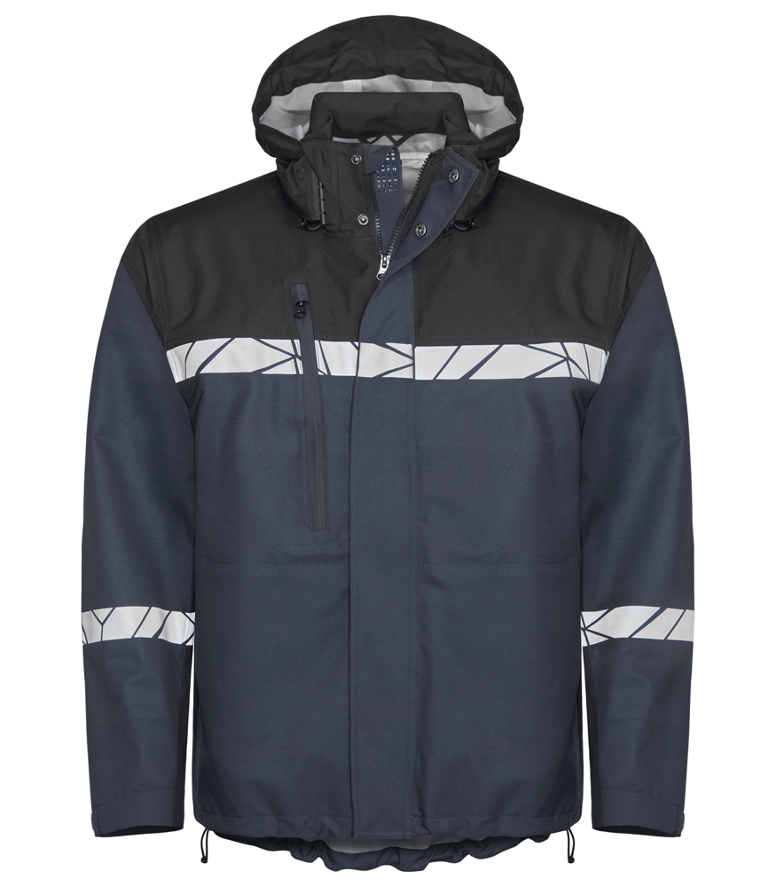 • Shelljas van wind- en waterdicht materiaal, getapete naden • Rits aan de voorkant bedekt met een flap om tocht en waterlekkage te voorkomen, drukknoopsluiting • Afneembare capuchon, verstelbaar op twee manieren met trekkoord aan de voorkant en met vire-systeem aan de achterkant • Zijzakken aan beide zijden, ruime borstzak aan de rechterkant en één binnenzak aan de linkerkant, alle zakken met ritssluiting • Verstelbare mouwuiteinden met klittenband, verstelbare zoom met trekkoord • Waschipzakje in de linker binnennaad