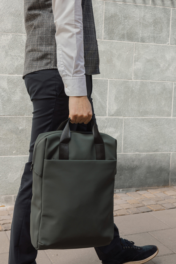 Een makkelijk hanteerbare tas met een strak ontwerp. Draag ‘m als totebag of als rugzak. De tas heeft een brede ritssluiting voor het handig inpakken van je laptop en andere waardevolle spullen. Een band aan de achterzijde maakt het mogelijk de tas aan een trolley te bevestigen voor soepel vervoer. Verder heeft hij een groot voorvak, een binnenvak en een praktische flessenhouder.Gecertificeerd volgens de RCS‑norm (Recycled Claim Standard), waarmee wordt gegarandeerd dat de volledige toeleveringsketen van gerecyclede materialen gecertificeerd is. Het totale gerecyclede gehalte is gebaseerd op het totale productgewicht. Dit product bevat 19% RCS‑gecertificeerd gerecycled polyester.