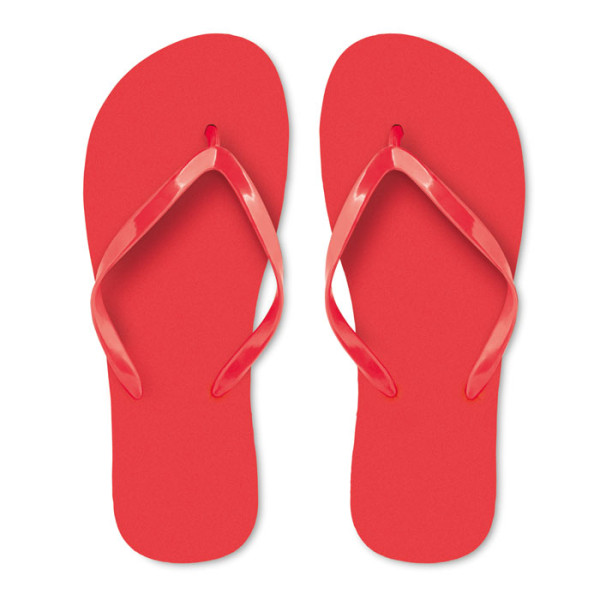 Strandslipper met polyethylene zool en PVC bandje. In twee maten verkrijgbaar. M is geschikt voor maat 36-39 en L voor maat 40-43.
