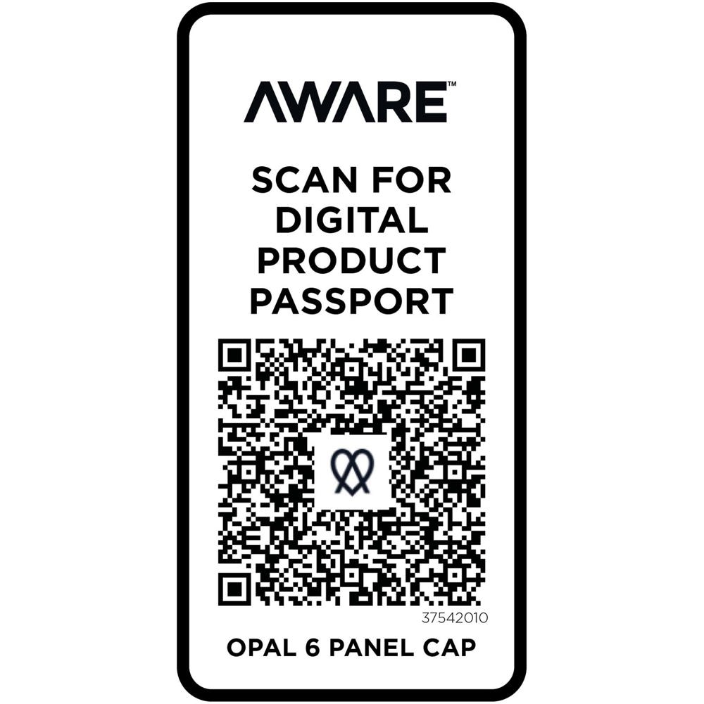 De Opal 6 panel cap is gemaakt van 70% gerecycled katoen en 30% gerecycled polyester. Hij is ontworpen voor een comfortabele pasvorm met een hoofdomtrek van 58 cm en de metalen gespsluiting zorgt voor eenvoudige, veilige aanpassingen. De cap bevat Cyclo® gerecyclede vezels waarbij voorgesorteerd afval wordt gebruikt dat de kleur van het garen bepaalt. Deze vezels verminderen niet alleen de vraag naar nieuwe grondstoffen, maar tonen ook een engagement voor een circulair leven, waarbij ze de essentie belichamen van het verminderen van afval en het bevorderen van een gesloten kringloopsysteem. Elke cap wordt ook geleverd met een Aware™ tracer. Met deze innovatieve functie kunnen gebruikers de oorsprong en de reis van hun artikel volgen via een QR-code, waardoor de transparantie in de toeleveringsketen wordt vergroot en er een sterkere band is tussen het product en het productieproces.