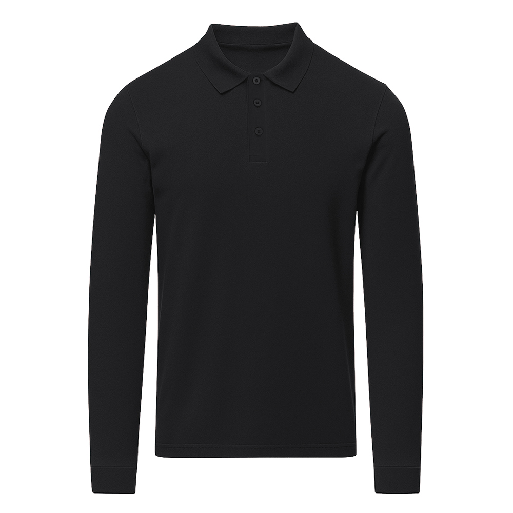 Unisex poloshirt met lange mouwen, gemaakt van piquéstof. Kraag en boorden in 1x1 rib met elastaan voor betere pasvorm en comfort. Sluiting met drie knopen in bijpassende kleur en verstevigde nektape.