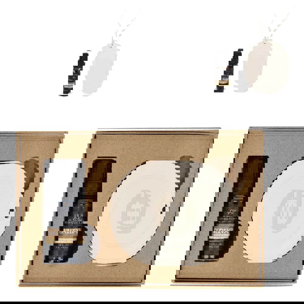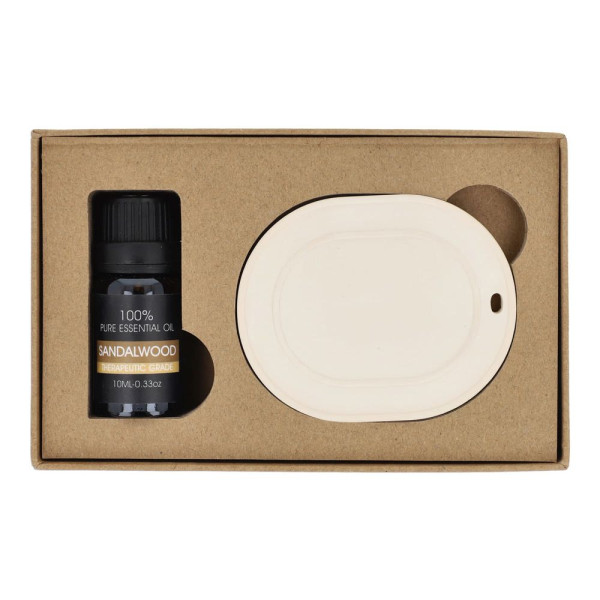 De InSideOut Aroma Giftset is voorzien van een poreuze hanger die door een paar druppeltjes pure olie de natuurlijke geur van sandalwood subtiel verspreidt. Ideaal voor kleine ruimtes zoals de slaapkamer, het toilet of de kledingkast. Een luxe ophang koord wordt meegeleverd in de fraaie geschenkverpakking, die door bijna elke brievenbus past.