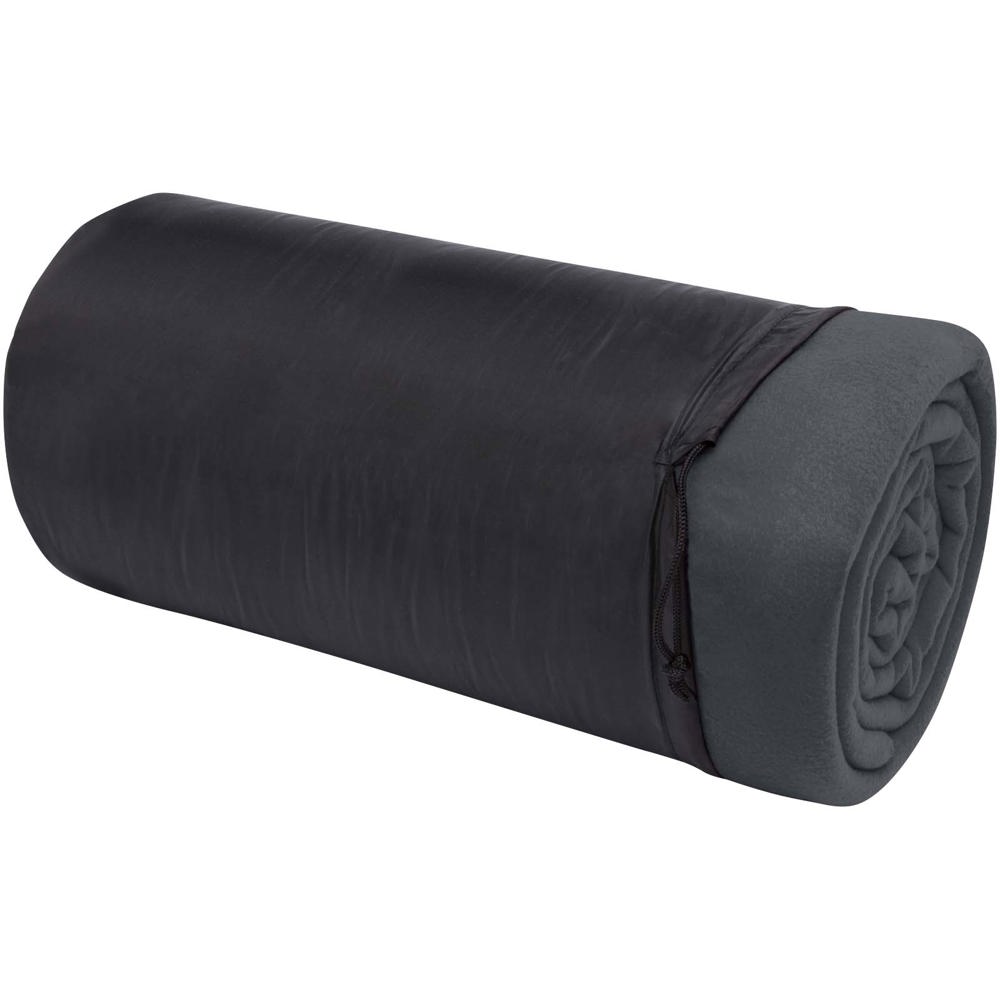 De effen Huggy plaid deken is gemaakt van 100% polarfleece (200 g/m²), een zacht en comfortabel materiaal dat snel de nodige warmte biedt en lichaamswarmte vasthoudt. Rol de deken op en berg hem op in het handige zakje met trekkoordsluiting, zodat je hem compact kunt opbergen zonder veel ruimte in te nemen. Afmeting: 2200 x 250 cm.