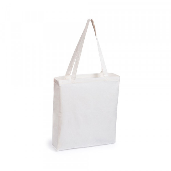 Tas van katoen met afwerking in natuurlijke kleur. Met verstevigde, 70 cm lange handvaten, inzetstukken en gestikte afwerking. Gewicht tot 7 kg.