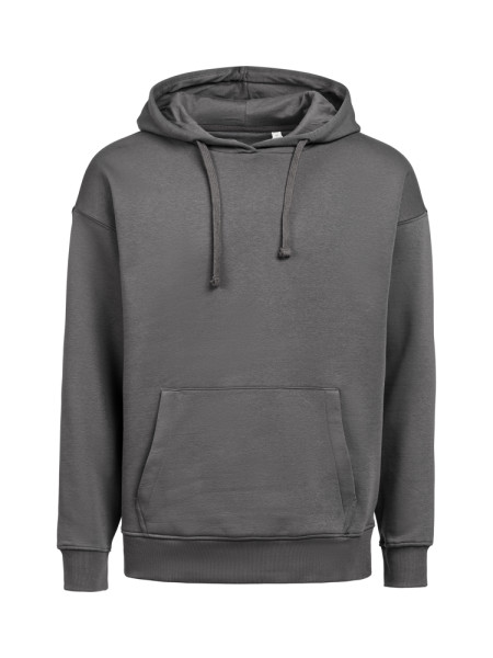 Deze unisex hoodie heeft een coole, losse pasvorm en is gemaakt van een mix van 80% biologisch katoen en 20% gerecycled polyester. De stof van 350 g/m² voelt zacht aan dankzij de enzymenwas, ideaal voor de hele dag comfort. Ontworpen met een verstelbare capuchon met trekkoord, geribde 2x1 boorden en zoom.