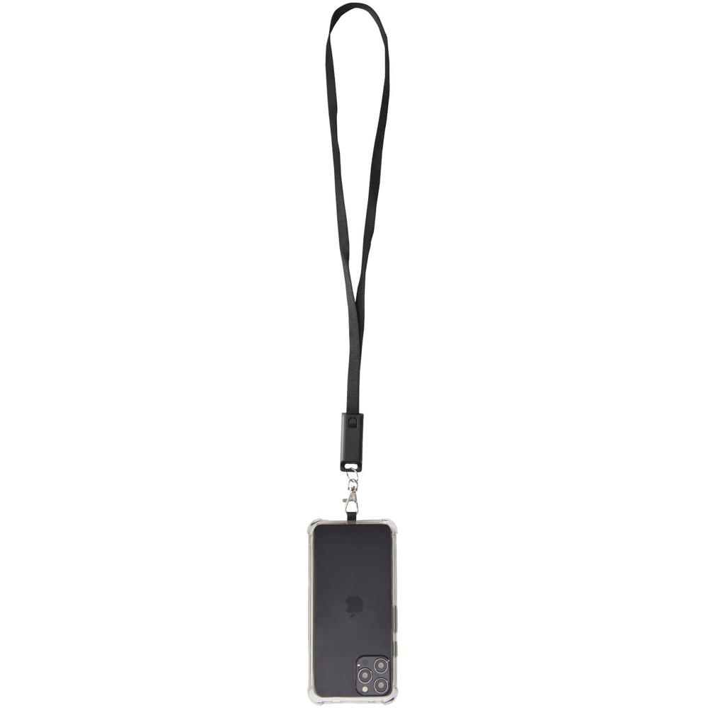 Franz smartphonelanyard van gerecycled plastic met ingebouwde datasynchronisatie en 5 in 1 snellaadkabel van 65 W