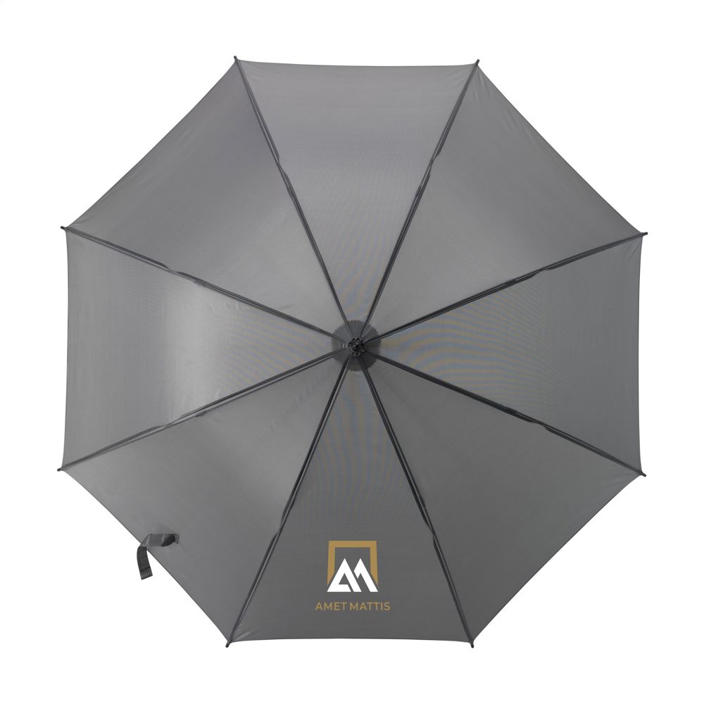 Paraplu met automatische telescoopvering. 190T polyester bespanning, glasvezel frame, metalen steel, soft foam handgreep en klittenbandsluiting.