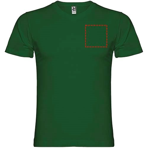Buisvormig T-shirt met korte mouwen en tweelaags V-hals. Versterkte bedekte naden in kraag en schouders. Verwijderbaar etiket. Het model is 190 cm en draagt maat L.