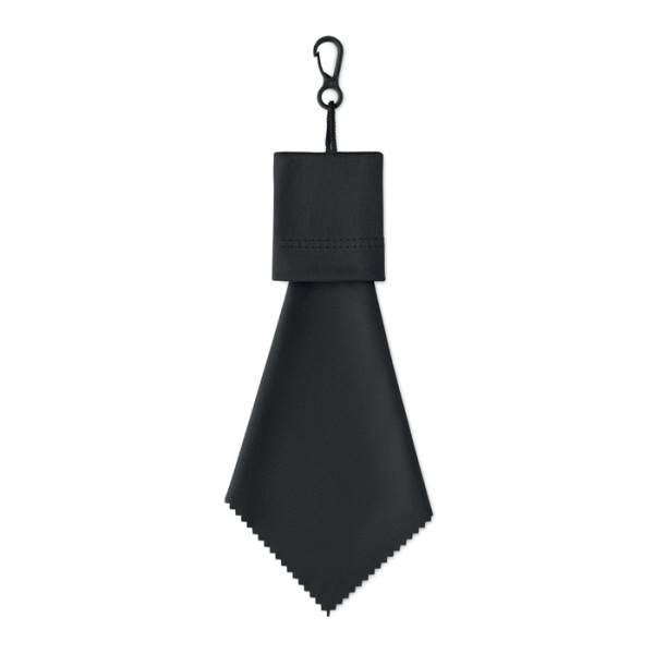 RPET reinigingsdoekje met vast zakje om in op te bergen, inclusief PP plastic ophanghaak.meer