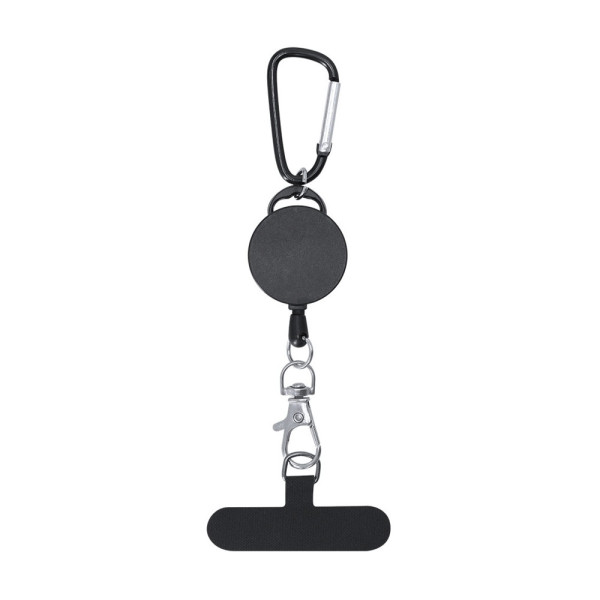 60 cm uitschuifbare smartphonehouder. Draagaccessoire om tussen de hoes en de smartphone te plaatsen en een metalen roterende karabijnhaak. Aan het uiteinde zit een karabijnhaak voor ophanging en gemakkelijk vervoer.