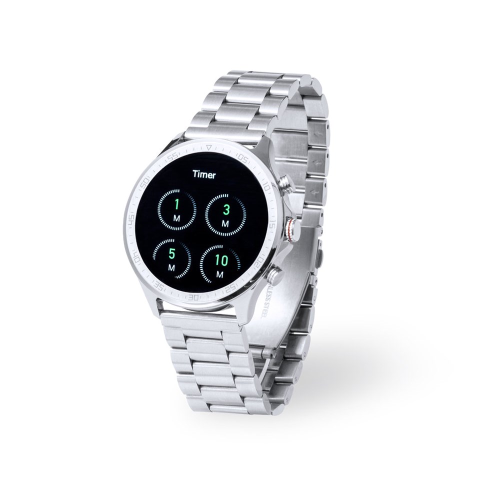 Multifunctionele smartwatch in een casual ontwerp, met Bluetooth®-verbinding. Ronde designkast en bijpassende roestvrijstalen horlogeband. 1,32-inch TFT-touchscreen display en 230 mAh batterij, waardoor het de perfecte gadget is voor allerlei sporten, vrije tijd en dagelijkse activiteiten.Tal van functies beschikbaar, meertalige interface en spatwaterdicht, met APP beschikbaar voor iOS en Android. Gepresenteerd in een individuele design doos, met handleiding in het Engels en Spaans.