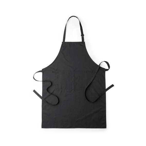 Keukenschort bestaande uit katoen en polyester. Verkrijgbaar in verschillende kleuren. Met dubbele zak aan de voorkant, en verstelbare nekkoord. Lengte tot net onder de knie.