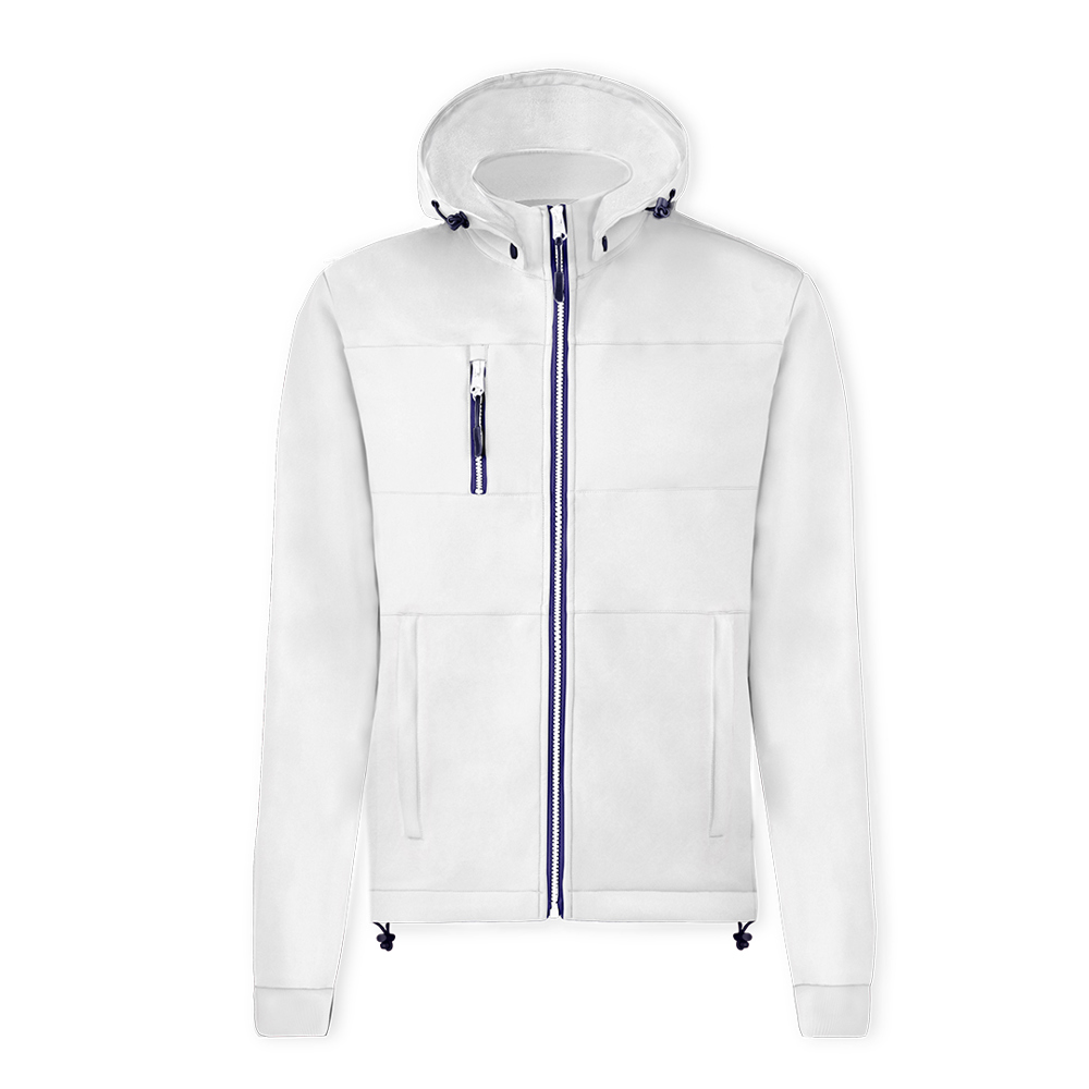 Jas van duurzaam en ademend softshell-materiaal van 300 g/m2. Moderne pasvorm met centrale ritssluiting, steekzakken en praktische borstzak met ritssluiting en contrasterende ritstrekkers. Opstaande kraag met verstelbare en afneembare capuchon. Zoom onderaan met verstelbaar koord. Wind- en waterafstotende softshell buitenkant en warme microfleece voering in contrasterende kleur. Verkrijgbaar in de maten XS, S, M, L, XL, XXL.