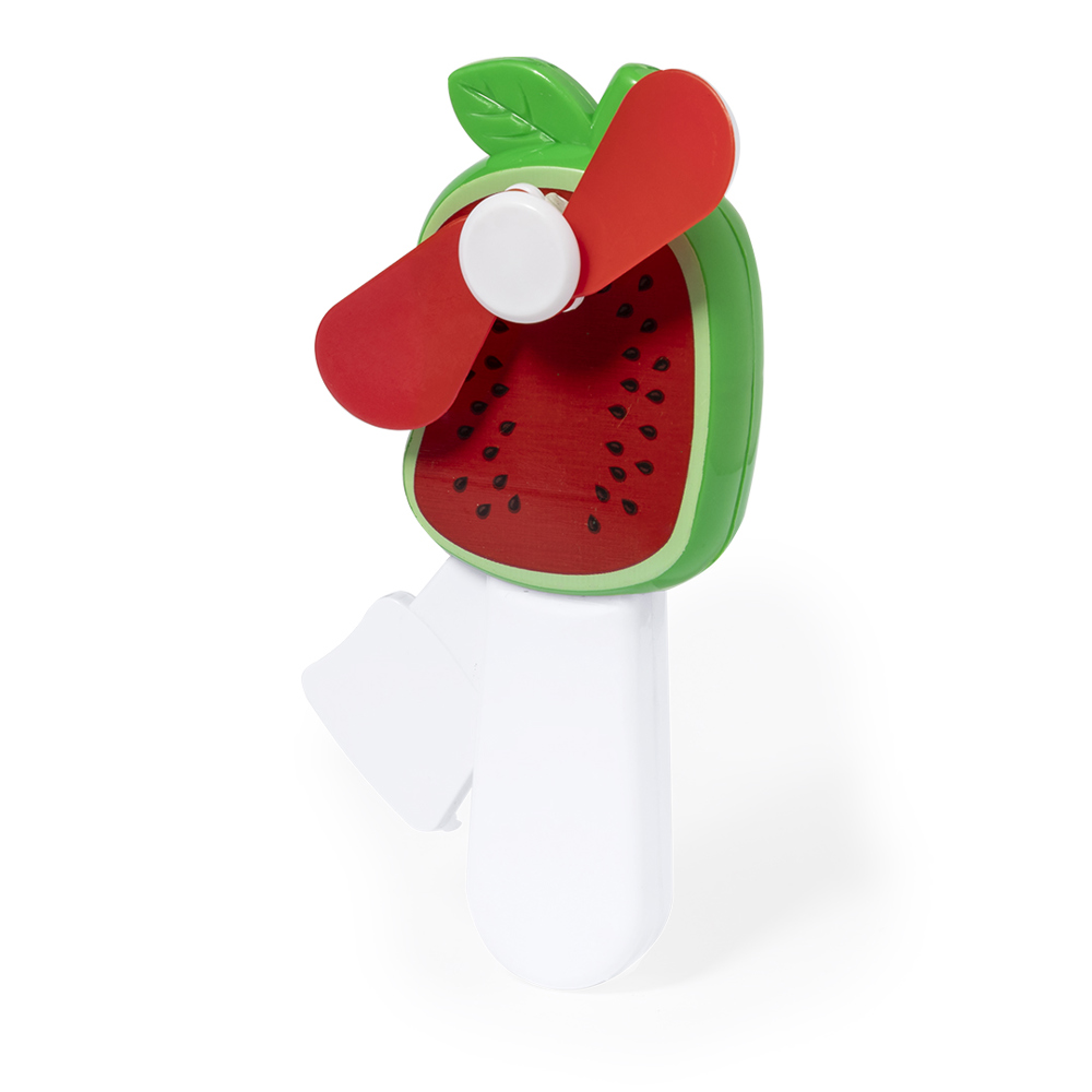 Waaier in leuke fruitvormen, gemaakt van resistent ABS. Handmatige bediening door continu op de...meer