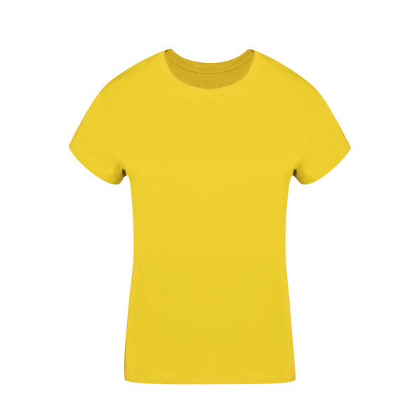 Dames-T-shirt. Gemaakt van glad breiwerk met 100% katoen en in Single Jersey-stijl van 160g/m². Zacht aanvoelend en modern gesneden, met zijnaden. Smalle ronde hals in 2x2 ribstof. Dubbele stiksels aan zoom en mouwen voor extra duurzaamheid en bestand tegen intensief gebruik. Gemakkelijk verwijderbaar label. Verkrijgbaar in een breed scala aan modieuze kleuren en in de maten S, M, L, XL en XXL.