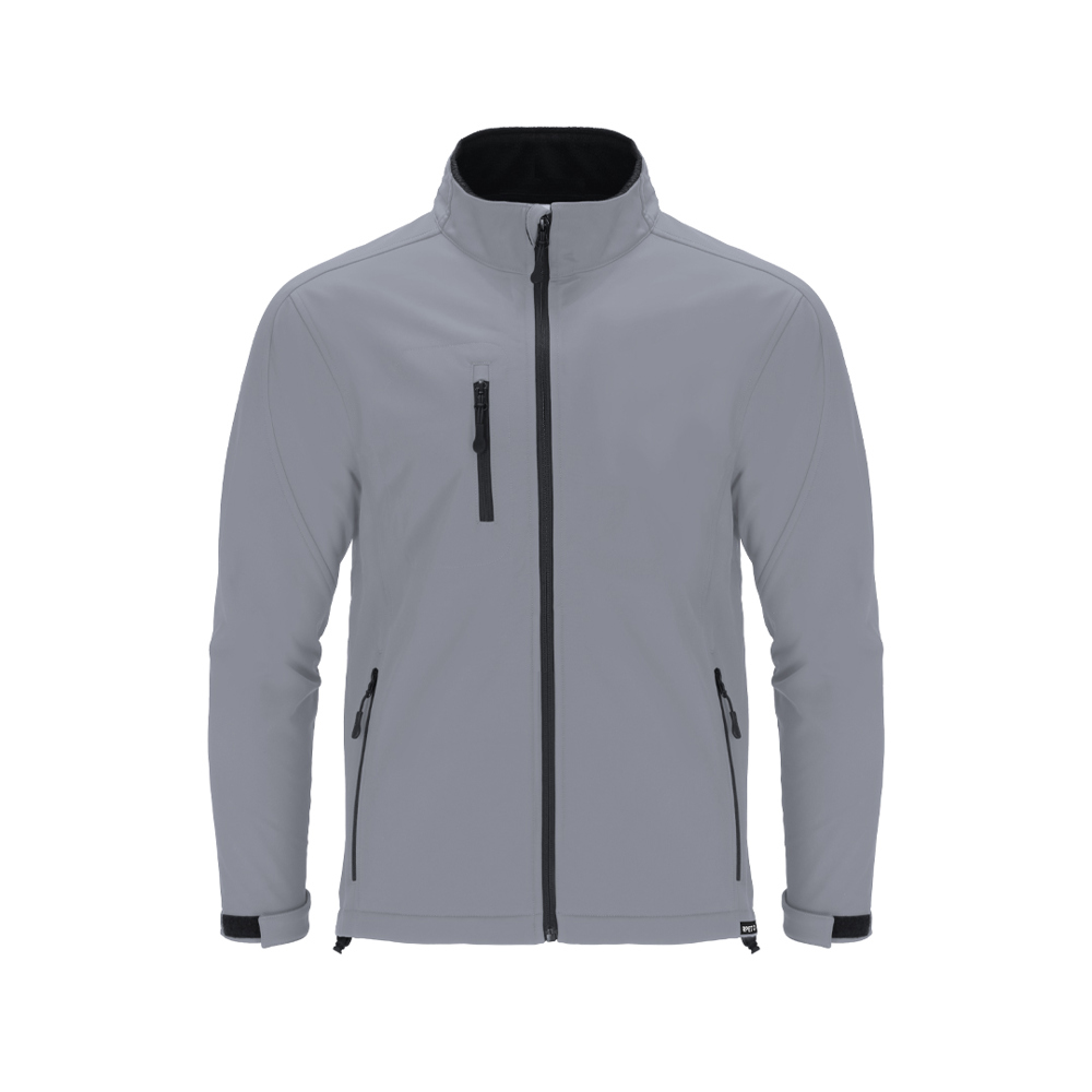 RPET Soft jack gemaakt in 3 lagen, 340 g/m². Met 8000 mm membraan, waterdicht en ademend. Buitenkant van Soft Shell en binnenkant van zwart microfleece. Met buitenzak op de rechterborst en twee zijzakken met ritsen. Met centrale ritssluiting en omgekeerde ritsen op de zakken, inclusief zwarte trekkoorden. Raglanmouwen met klittenbandsluiting aan de manchet in het zwart. Bijpassende kinbeschermer en verstelbare tailleband met elastische band en stopper. RPET-label op de zoom van het kledingstuk.