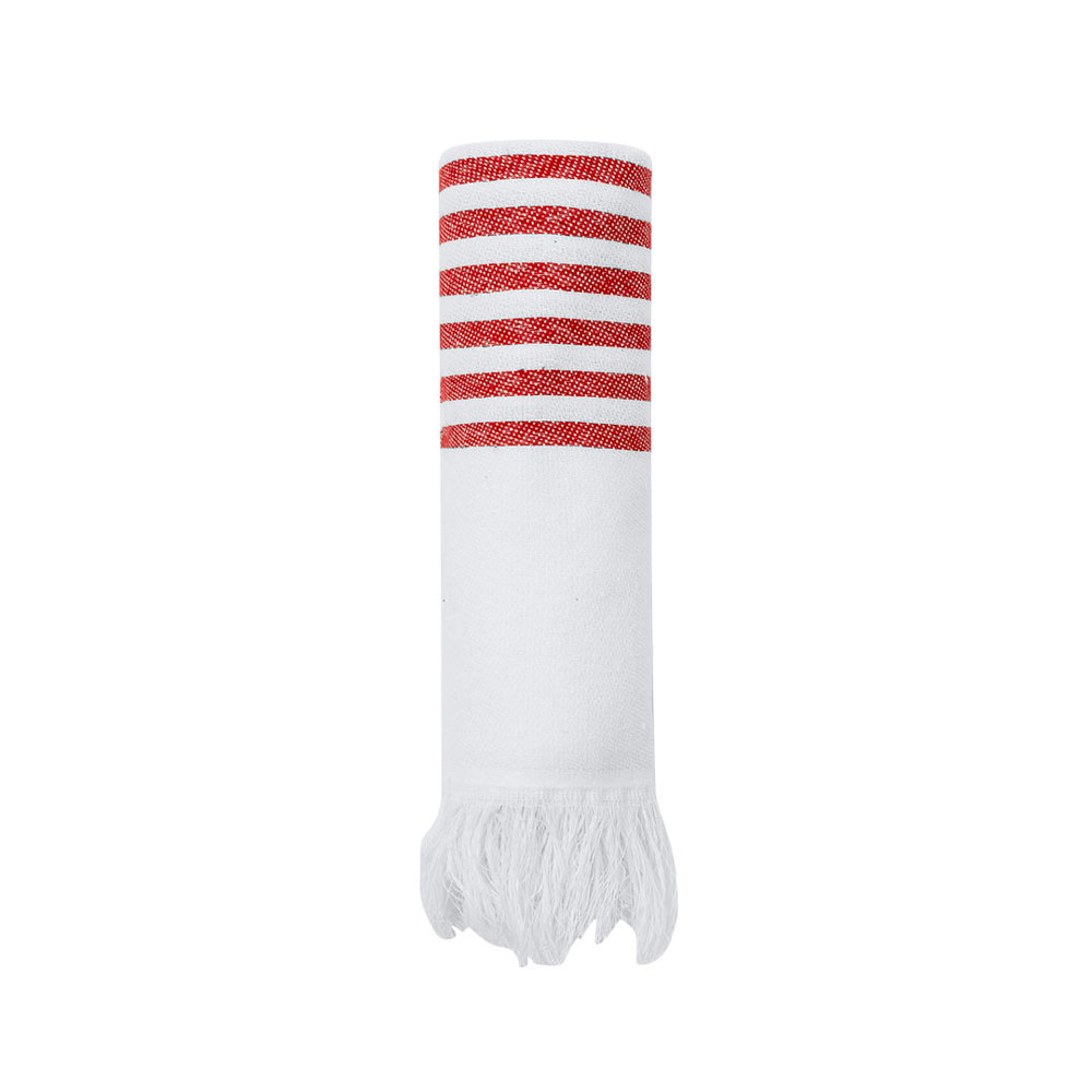 Zachte pareo-handdoek van 300 g/m², gemaakt van een combinatie van gerecycled katoen en gerecycled polyester SEAQUAL.Het ontwerp heeft een witte basis met gekleurde strepen en is versierd met opvallende franjes aan de uiteinden. Inclusief label met SEAQUAL ontwerp, dat zijn duurzame oorsprong certificeert en zijn bijdrage aan de oceanen schoonmaken. SEAQUAL INITIATIVE werkt samen met partners en autoriteiten om te helpen onze oceanen schoon te maken. Marine-afval van onze stranden, zeebodems en oceaanoppervlakken, rivieren en estuaria worden verzameld door schoonmaakprogramma's. Daarna worden ze ingedeeld in verschillende materialen en het deel van plastic wordt schoongemaakt en omgevormd tot GERECYCLED MARIEN PLASTIC, een volledig traceerbare grondstof die duurzame en inspirerende producten creëert. Door producten te kiezen die GERECYCLED MARIEN PLASTIC bevatten, help je onze oceanen schoon te houden.SAMEN VOOR EEN SCHONE OCEAAN.