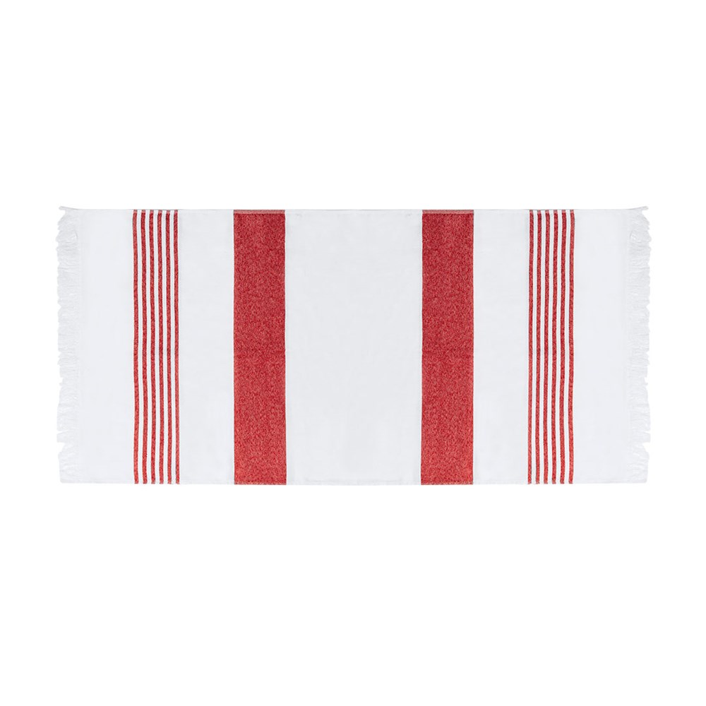 Zachte pareo-handdoek van 3000 g/m², gemaakt van een combinatie van gerecycled katoen en gerecycled polyester SEAQUAL.Het ontwerp heeft een witte basis met gekleurde strepen en is versierd met opvallende franjes aan de uiteinden. Inclusief label met SEAQUAL ontwerp, dat zijn duurzame oorsprong certificeert en zijn bijdrage aan de oceanen schoonmaken. SEAQUAL INITIATIVE werkt samen met partners en autoriteiten om te helpen onze oceanen schoon te maken. Marine-afval van onze stranden, zeebodems en oceaanoppervlakken, rivieren en estuaria worden verzameld door schoonmaakprogramma's. Daarna worden ze ingedeeld in verschillende materialen en het deel van plastic wordt schoongemaakt en omgevormd tot GERECYCLED MARIEN PLASTIC, een volledig traceerbare grondstof die duurzame en inspirerende producten creëert. Door producten te kiezen die GERECYCLED MARIEN PLASTIC bevatten, help je onze oceanen schoon te houden.SAMEN VOOR EEN SCHONE OCEAAN.