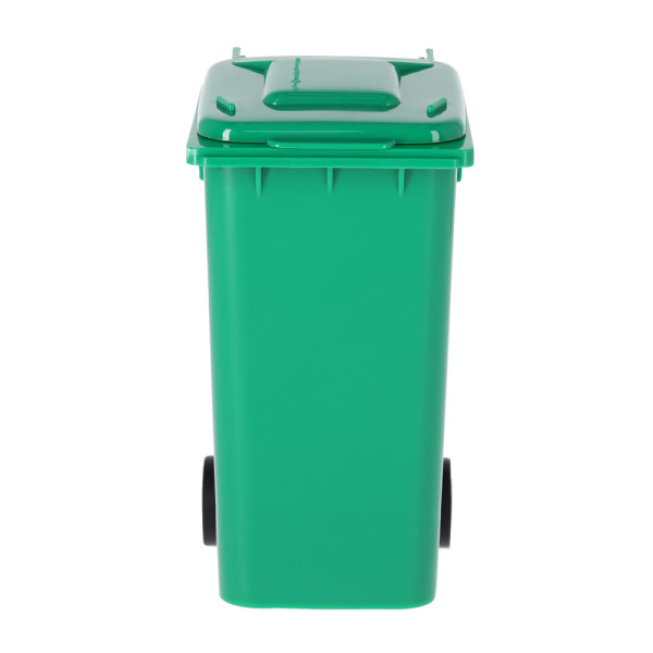 Pennenbakje met wielen in de vorm van een container in verschillende kleuren en met deksel.