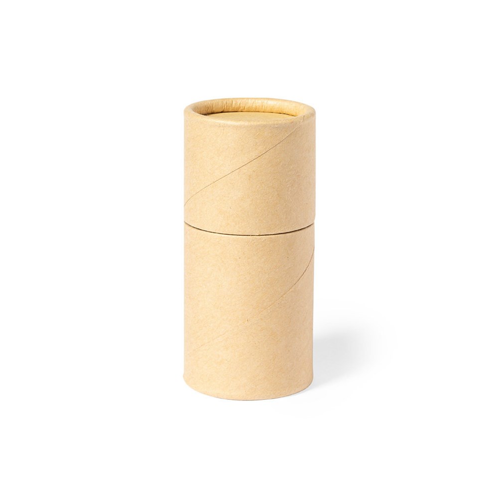 Set van 13 stuks in een cilindrische doos van natuurlijk karton. Inclusief 6 houten kleurpotloden met een zeshoekige body van natuurlijke afwerking en 6 crayons in verschillende kleuren, puntenslijper in gele kleur.