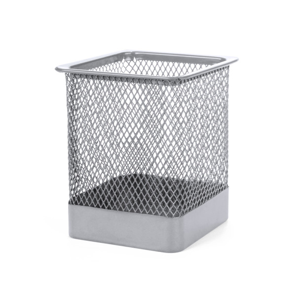 Metalen mesh pennenbakje in diverse kleuren. Gepresenteerd in een individuele doos.meer
