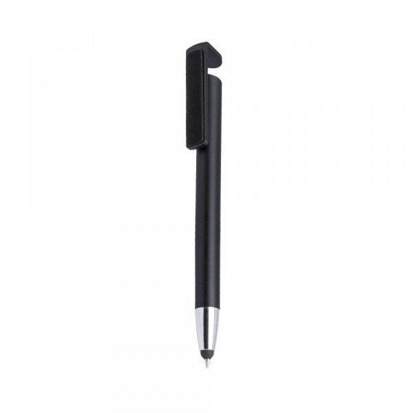 Multifunctionele stylus balpen met push-up-mechanisme in felle kleuren en clip met dubbele functie, speciaal ontworpen om te functioneren als houder voor mobiele apparaten en ook als schermreiniger. Met body in metallic afwerking, speciaal ontworpen voor tampondruk. Zwarte inkt.