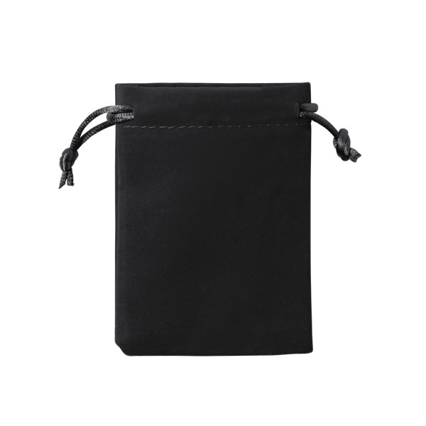 Fluwelen zakje met een gladde afwerking in diverse kleuren. Met koordsluiting met koord in bijpassende kleur.
