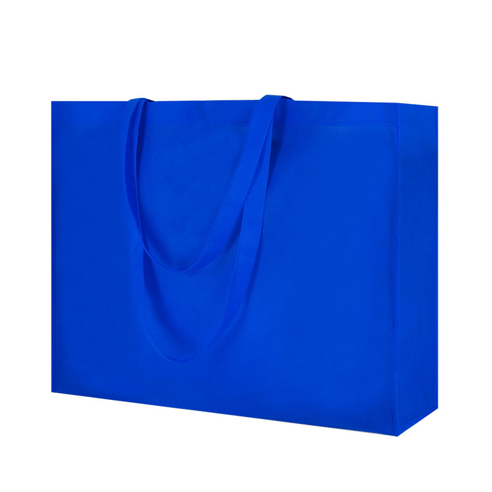Non-woven tas van 80 g / m2, in verschillende kleuren. Met 75 cm lange hengsels, versterkte inzetstukken met bies in bijpassende kleur en een gestikte afwerking. Gewicht tot 5 kg.