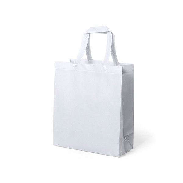 Tas van hoge kwaliteit gemaakt van gelamineerd non-woven 110 g / m2, in diverse kleuren. Met korte, versterkte handvaten van 35 cm, en een hitteverzegelde afwerking. Gewicht tot 10 kg.