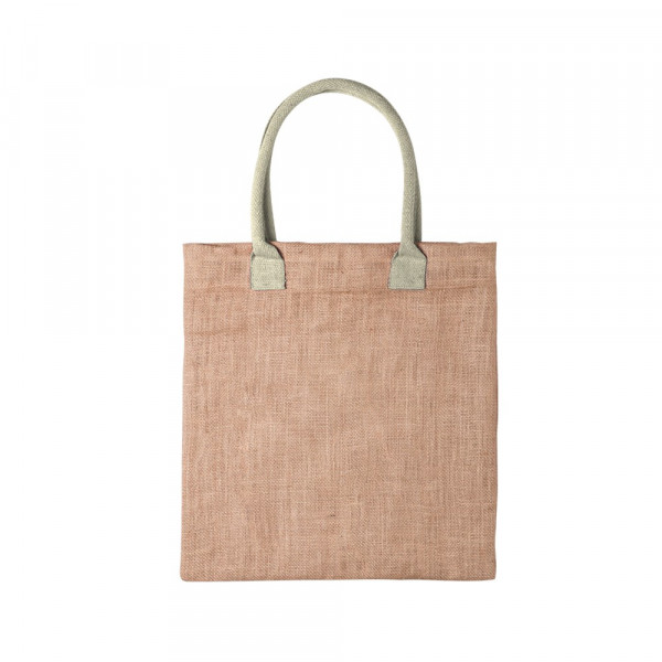 Jute tas van gemiddelde grootte, verstevigen handgrepen van katoen, in verschillende kleuren. Gewicht tot 9 kg.