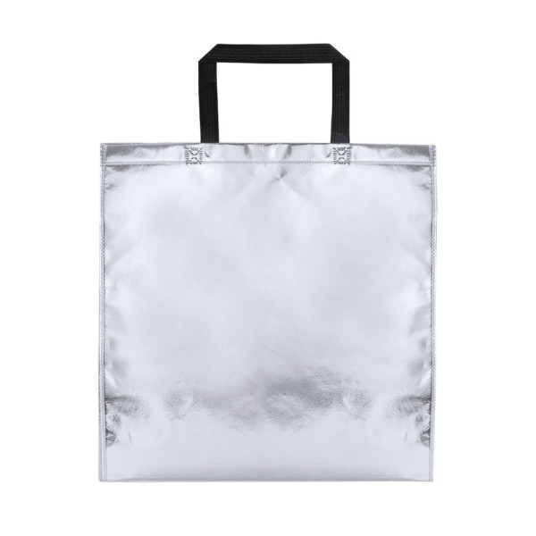 Gelamineerde, non-woven tas in metallic. Verkrijgbaar in het goud, zilver en rose. Tas is voorzien van korte hengsels en heeft een draagvermogen van 7 kg.