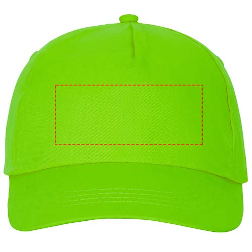 De Feniks 5-panelen pet heeft geborduurde oogjes voor verbeterde ventilatie, zodat je koel en fris blijft tijdens elke activiteit. Met een hoofdomtrek van 58 cm biedt hij een comfortabele pasvorm voor verschillende hoofdmaten. De stoffen klittenbandsluiting kan moeiteloos worden versteld voor de perfecte pasvorm. De Feniks pet is gemaakt van 175 g/m² katoenen keperstof en combineert duurzaamheid met een zacht, ademend gevoel.