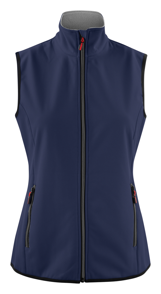 Bodywarmer uitvoering van de Trial softshell. Elastische band onderaan de zoom en aan de armopening. Tweekleurige ritssluiting. De zippullers kunnen indien gewenst vervangen worden door één van de andere beschikbare kleuren.