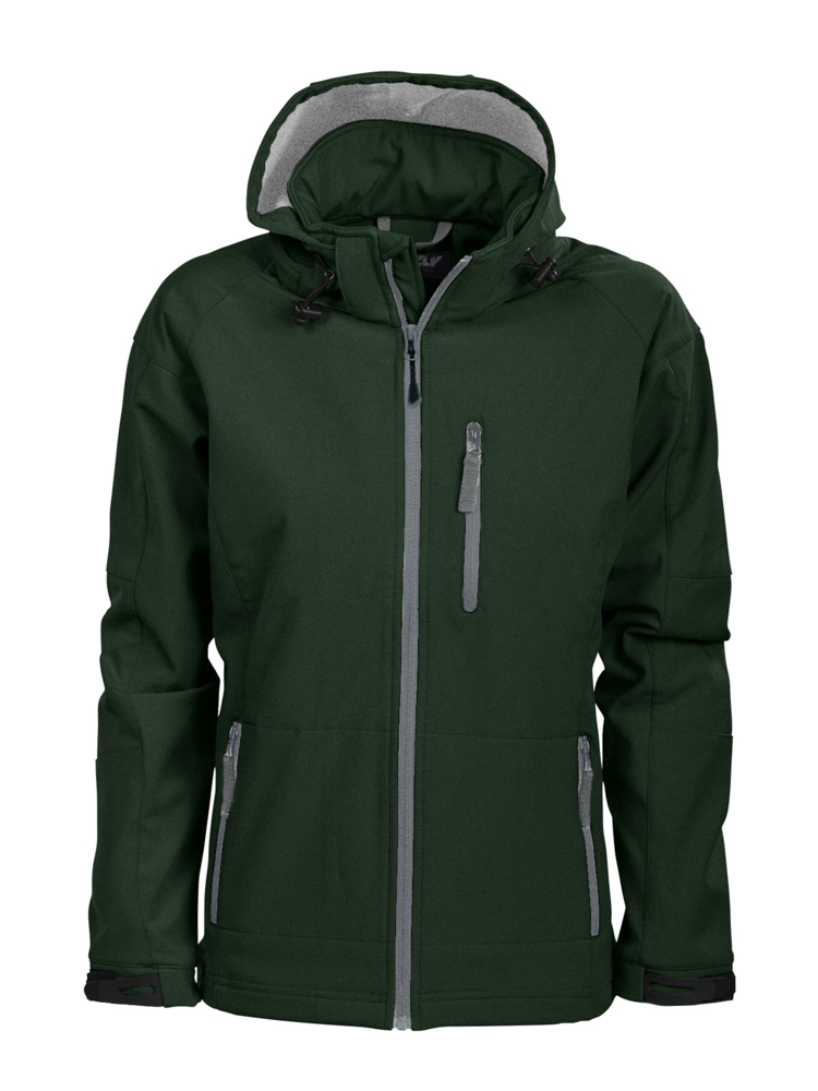 Softshell jas met contrasterende microfleece aan de binnenzijde. Wind- en waterbestendig (WP3000/MVP2000), afritsbare capuchon en manchetten verstelbaar met velcro. Elastisch trekkoord met stopper aan de capuchon en onderaan de zoom. Eén borstzak, twee zijzakken en één binnenzak.