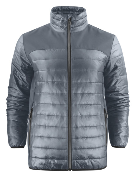Lichte jas in twee materialen: juk en zijpanelen in softshell en body (voor-en achterzijde) en mouwen in lichtgewatteerd taffeta materiaal. Contrasterende ritssluiting. De zippullers kunnen indien gewenst vervangen worden door één van de andere beschikbare kleuren.