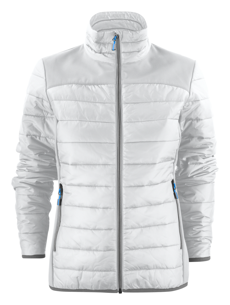 Lichte jas in twee materialen: juk en zijpanelen in softshell en body (voor-en achterzijde) en mouwen in lichtgewatteerd taffeta materiaal. Contrasterende ritssluiting. De zippullers kunnen indien gewenst vervangen worden door één van de andere beschikbare kleuren. De wattering is geproduceerd volgens het Blue Sign systeem dat een minimum inpact op mens en omgeving doorheen het ganse productieproces garandeert.