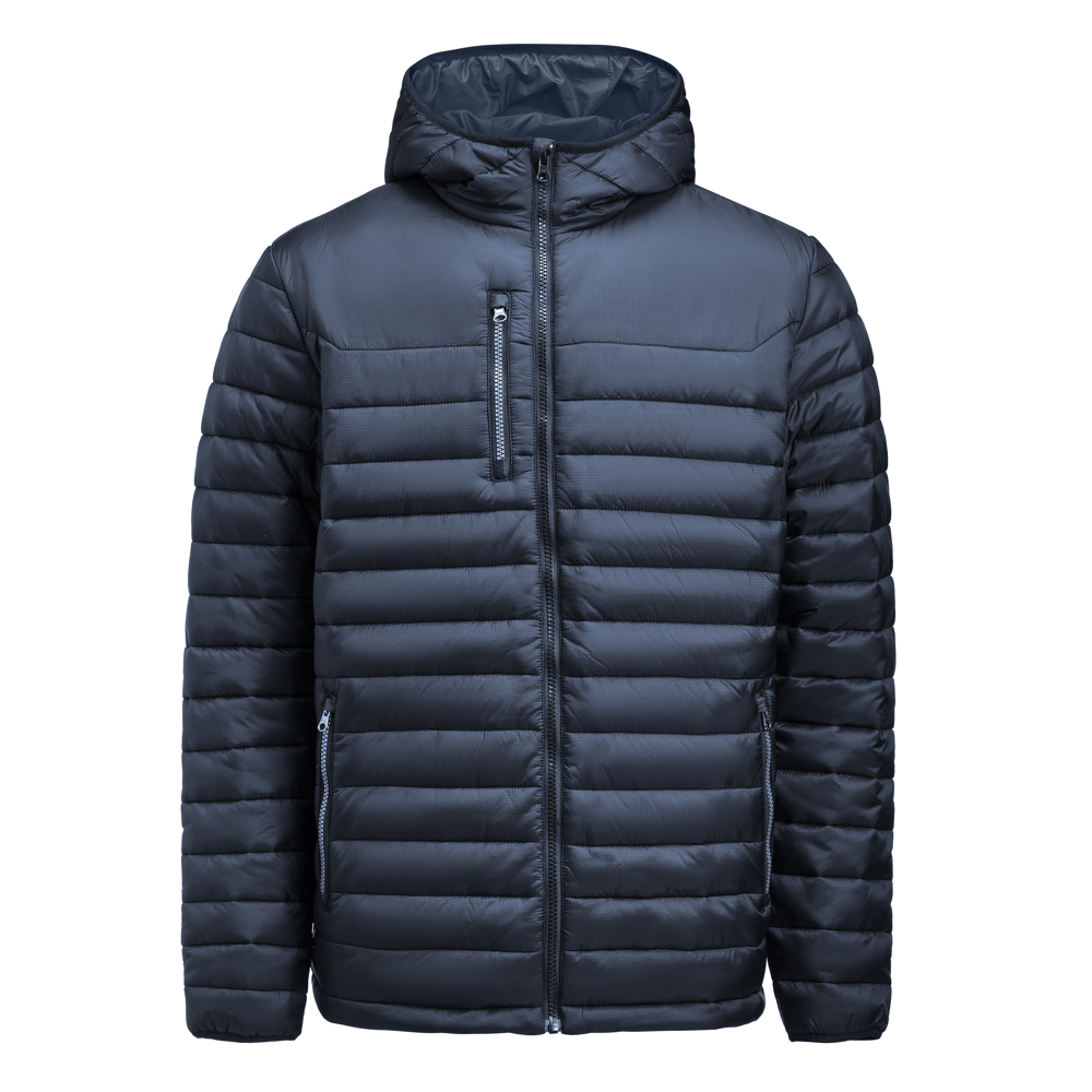 De Meadows gewatteerde jas met vaste capuchon is gemaakt van ripstop buitenstof, vervaardigd uit gecertificeerd gerecycled polyamide. Het moderne ontwerp omvat twee zijzakken met ritssluiting en een borstzak met ritssluiting voor handige en veilige opslag. De voorpas maakt eenvoudige personalisatie mogelijk. De elastische afwerking aan de mouwen zorgt voor een nauwsluitende pasvorm, terwijl de verstelbare zoom met elastisch trekkoord zorgt voor aanpasbaar comfort. Daarnaast heeft de jas binnenin een opgestikte zak met klittenband.
