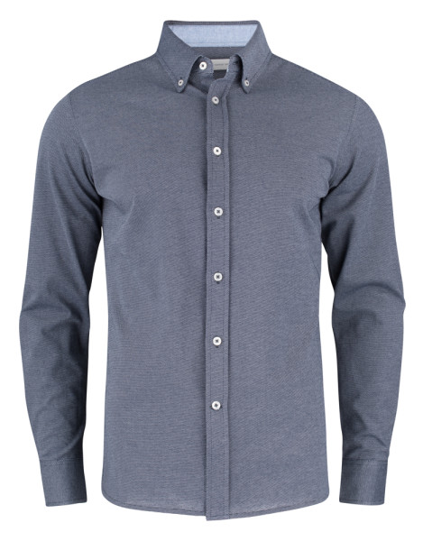Hemd in jersey materiaal met een oxford look. Geweven details aan de binnenzijde van de kraag en zijsplitjes. De herenversie heeft een button down boord. Knopen in parelmoerkleur. Aanpasbare manchetten.