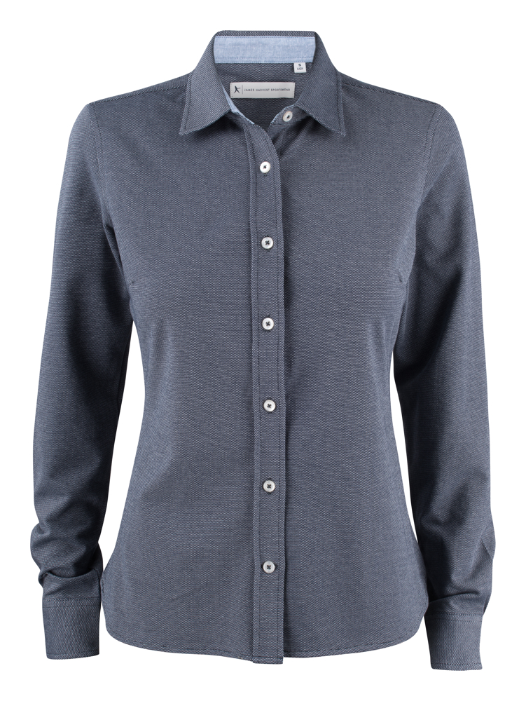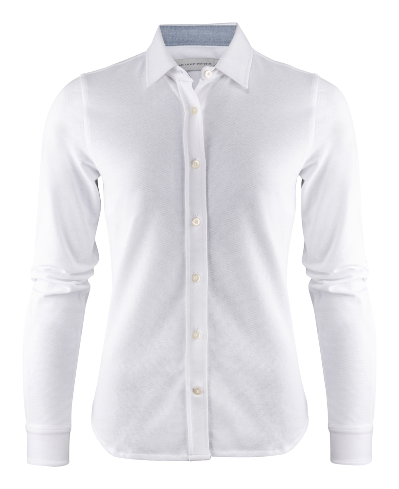 Hemd in jersey materiaal met een oxford look. Geweven details aan de binnenzijde van de kraag en zijsplitjes. De herenversie heeft een button down boord. Knopen in parelmoerkleur. Aanpasbare manchetten.