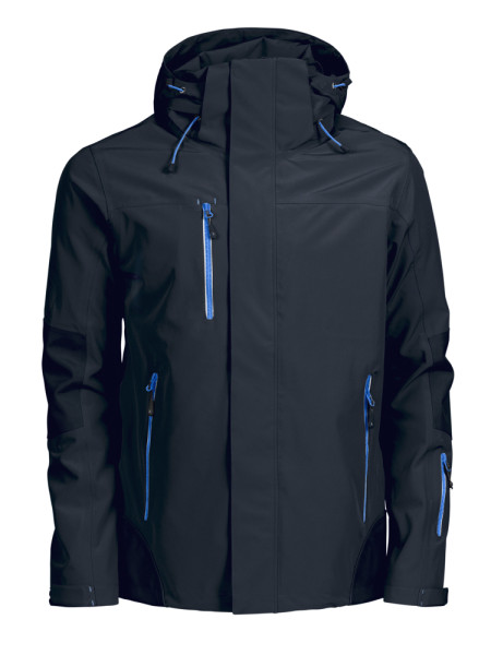 Functionele shelljas in een eigentijds design en met een moderne pasvorm. Ritssluiting onder de oksels voor extra ventilatie. Mouwzakje, voorzakken, borstzak en binnenzak allemaal met contrasterende ritssluiting. Hoge resistentie tegen slijtage door de Cordura op de ellebogen en op de lage rug. Hoge kraag, aanpasbare capuchon, reflecterende biezen in toon-op-toon en reflecterende ritssluitingen.