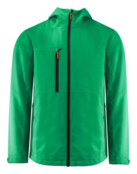 Functionele shelljas met getapete naden. Waterdichte ritssluiting vooraan en aan de borstzak. Omgedraaide nylon ritssluitingen aan de zijzakken. Aanpasbare velcrosluiting aan de manchetten. Mesh binnenvoering met borduurritssluiting. De capuchon en de zoom zijn aanpasbaar met elastische trekkoorden. De zipperpullers kunnen indien gewenst vervangen worden door één van de andere beschikbare kleuren.