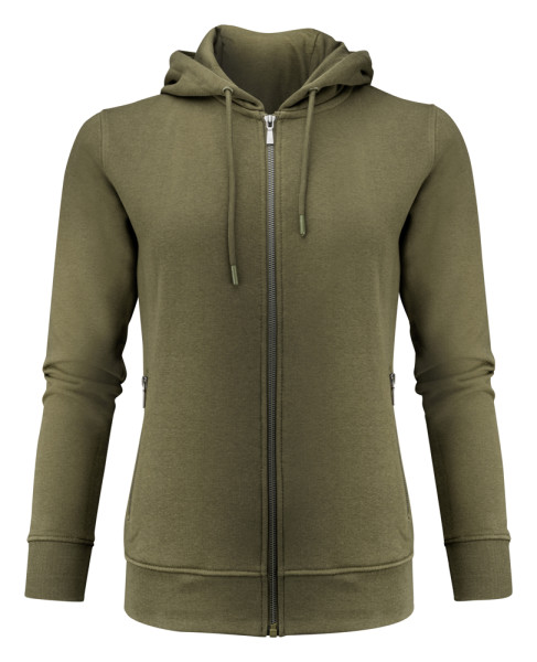 Capuchontrui met volledige ritssluiting en halve maan in de nek. Contrasterende, metalen nano-membraanrits middenvoor en steekzakken. Toon op toon trekkoorden met rubberen kogelpunt uiteinde. Geborstelde binnenkant. 1x1 ribboord aan mouwen en onderkant.