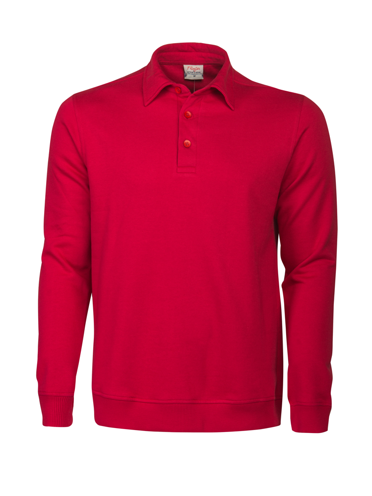 Sweatshirt met polokraag. 2 x 2 rib met elastaan aan de boord onderaan en aan de manchetten. Oeko-Tex 100 gecertificeerd.