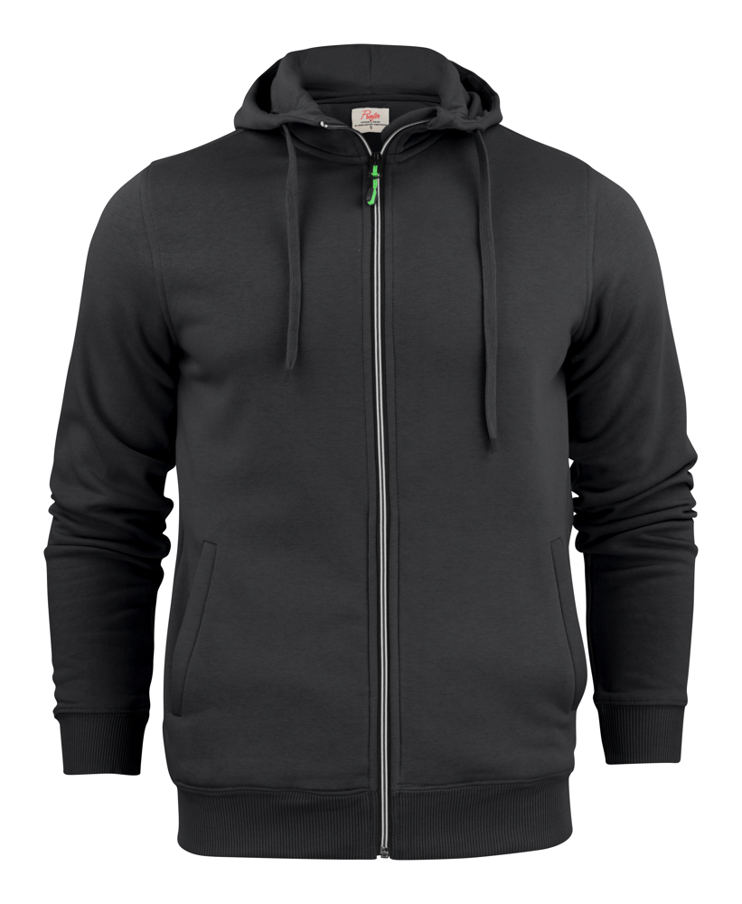 Sweatshirt met capuchon met tweekleurige ritssluiting vooraan en lichtgebogen steekzakken. De binnenzijde van de capuchon is single jersey. De zippullers kunnen indien gewenst vervangen worden door één van de andere beschikbare kleuren. Oeko-Tex 100 gecertificeerd.