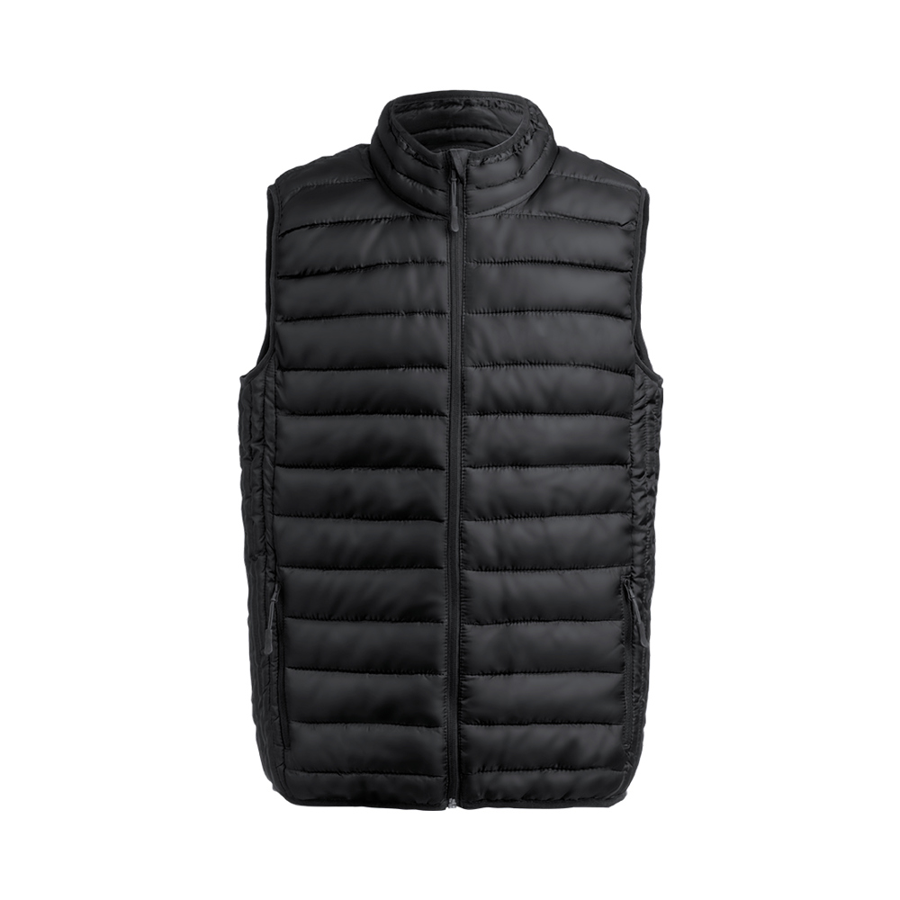 Vest van warm en zacht 100% polyester materiaal. Van extra licht, compact, waterafstotend en winddicht materiaal, met vulling aan de binnenkant. Ritssluiting met lint op het handvat en grote zijzakken. Nekrits met klep en zijzakken met handvatten praktische draagtas Verkrijgbaar in de maten S, M, L, XL, XXL.