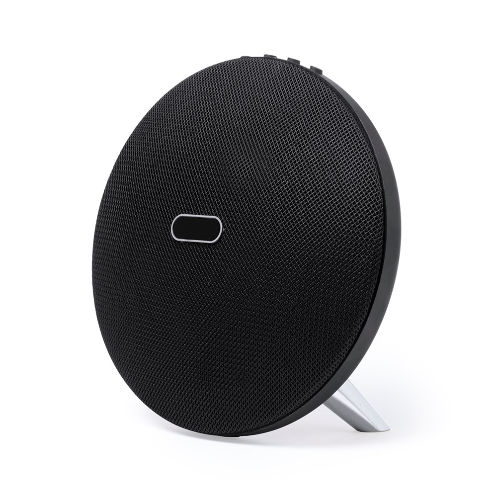 Stijlvolle bluetooth docking-luidspreker in een elegante zwarte afwerking met zilveren accessoires en origineel rond ontwerp. Het biedt 8W aan vermogen, heeft een handsfree-functie, een micro SD-kaartsleuf met maximaal 32 GB en extra lijningang via een 3,5 mm-jackaansluiting. Compatibel met iOS en Android, inclusief mini USB-oplaadkabel, 3,5 mm auxiliary jack-kabel en wordt geleverd in een aantrekkelijke designdoos. Met anti-slip rubberen steunen op de basis.